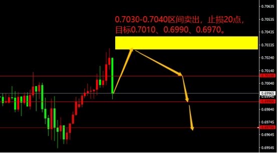 0.7030-0.7040区间卖出,止损20点,目标0.7010、0.6990、0.6970。
