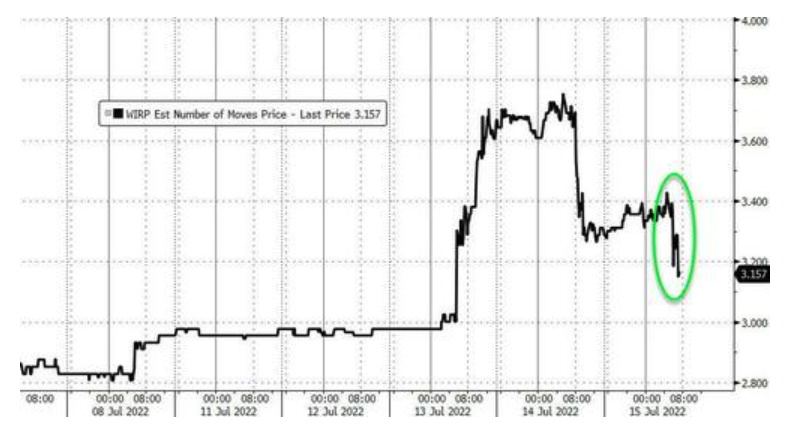 然而最新的密歇根消费者信心数据公布后,加上近两日几位美联储鹰派高官给100个基点加息降温,市场对美联储在7月暴力加息100个基点的预期,从前几日CPI公布后的75%,暴跌至仅15%,这推动美股盘中走高。